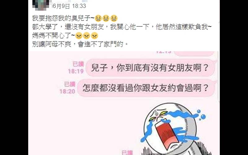 不久前,一位媽媽在臉書社團中發文,稱上大學的兒子讓她很不爽。「我要抱怨我的臭兒子,都大學了,還沒有