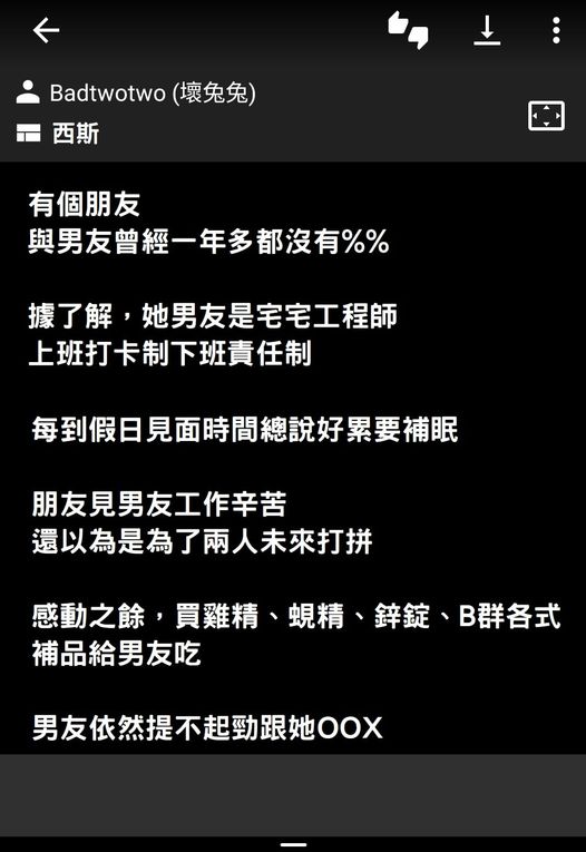從學生時代到出社會工作,身旁一堆宅宅男性,好不容易交了女友,工程師會這樣每天提不起勁嗎? 西 斯版就