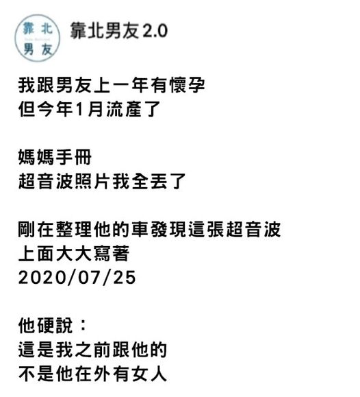 一孕 傻 3年?一名女子心急在網上控訴,透露在去(2019)年懷上男友的小孩,在年初不 幸 流 掉