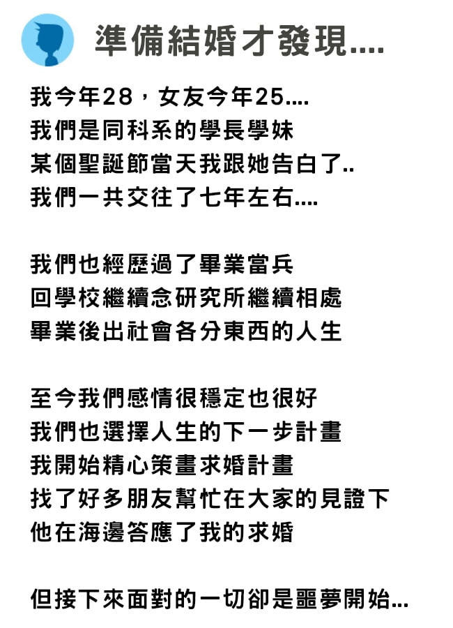 有女網友在臉書社團中發文分享學長娶到極品公主的故事。 –以下–