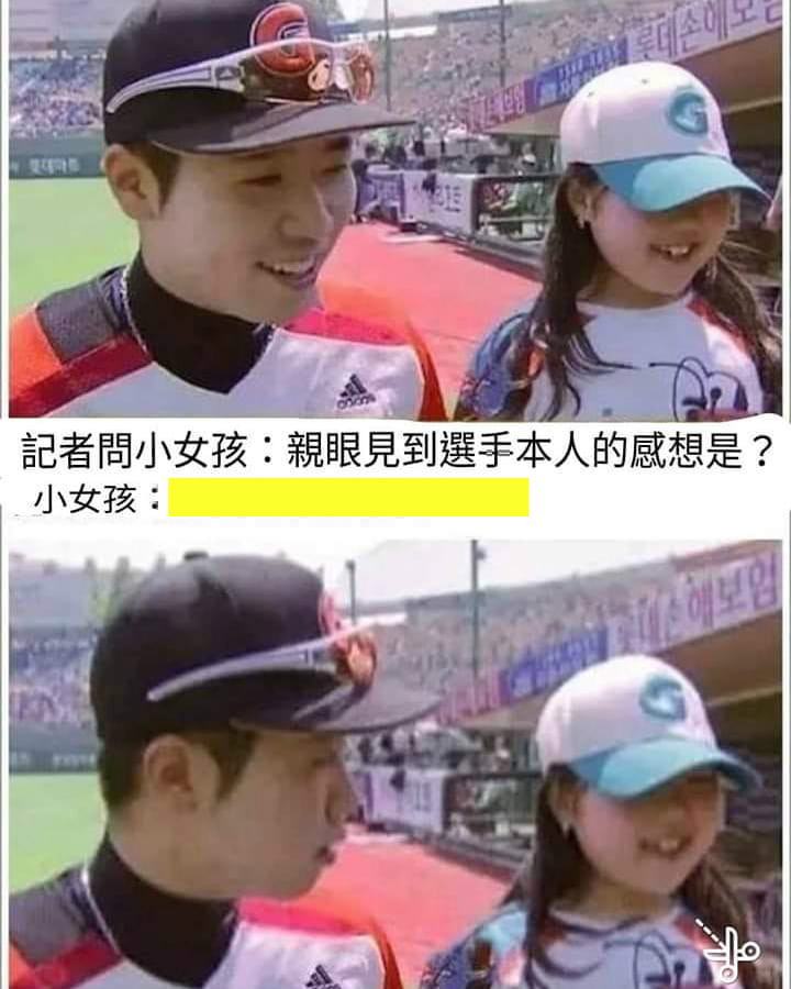 – 韓國棒球比賽 記者採訪一個妹妹看到球員的感想是什麼? 妹妹一講完 球員直接傻眼