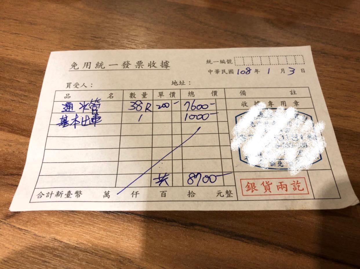 網友在臉書社團上發文: #想抱怨但不是不尊重專業 #畢竟我們不懂 人家都說通水管大概1500上不超過