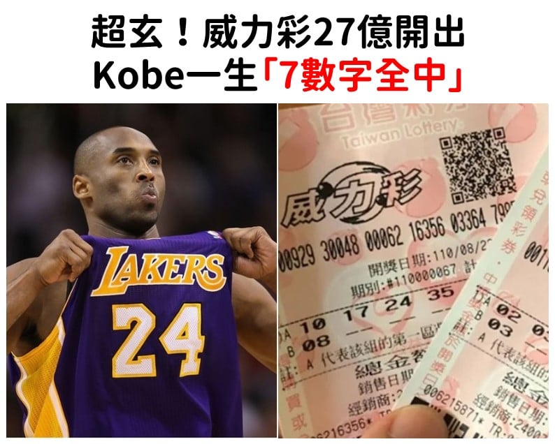 威力彩23日頭獎獎金上看27億,台彩稍早公布開獎結果一注獨得。有網友發現,8月23日是已故NBA傳奇