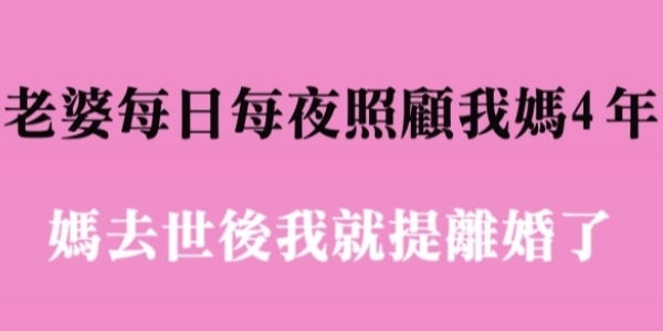 我小的時候,我爸就去世了,我是和母親一起生活的。 可是,現在她也走了,我正式想老婆提出離婚了。 她問