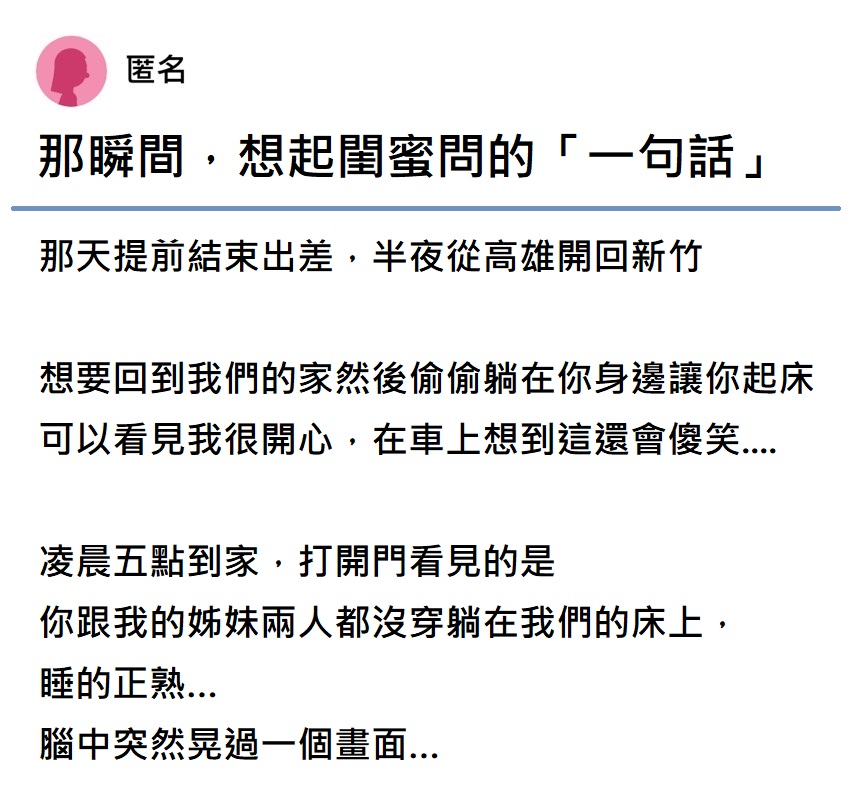 出差回家打開房門驚見震憾畫面!想起閨蜜曾說的「一句話」瞬間發麻… 不要漏聽姊妹閨蜜或好兄