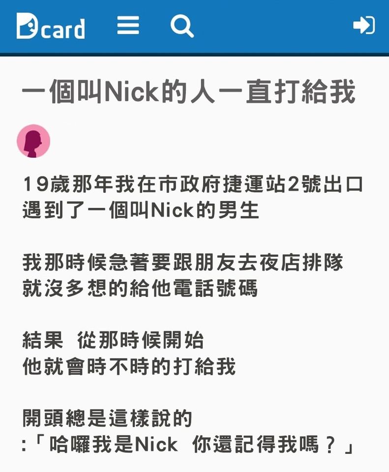 「一個叫Nick的人一直打給我。」你有遇過陌生人連四年都打電話給你的嗎?近日,就有網友分享,她19歲