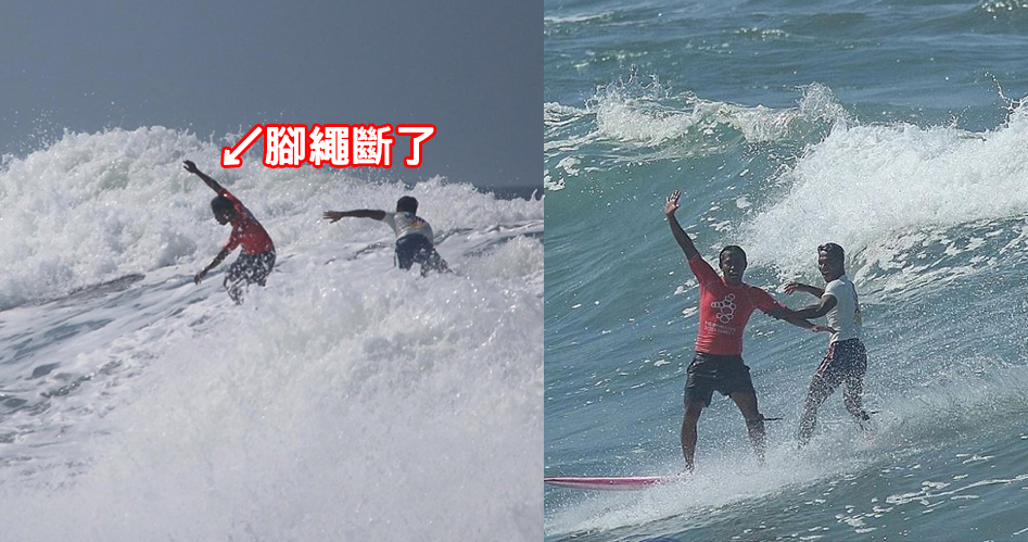 長板衝浪賽事出現暖心一幕! 衝浪選手卡蘇基(Roger Casugay)當時已經穩奪金牌,但是他卻發