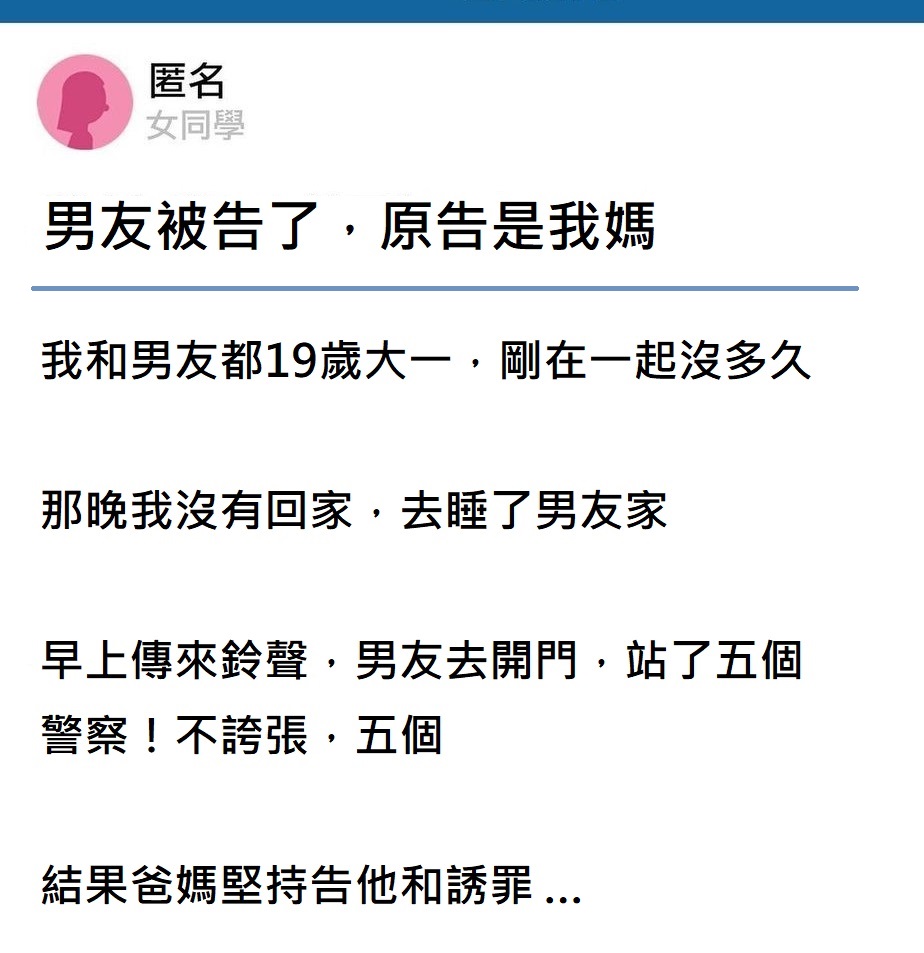 男友被告了,原告是我媽… 加入我們的Line群 「搞笑同樂會」,每天分享