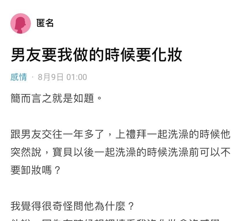 男友要我睡覺的時候要化妝… . . 以下全文 資料來源:D