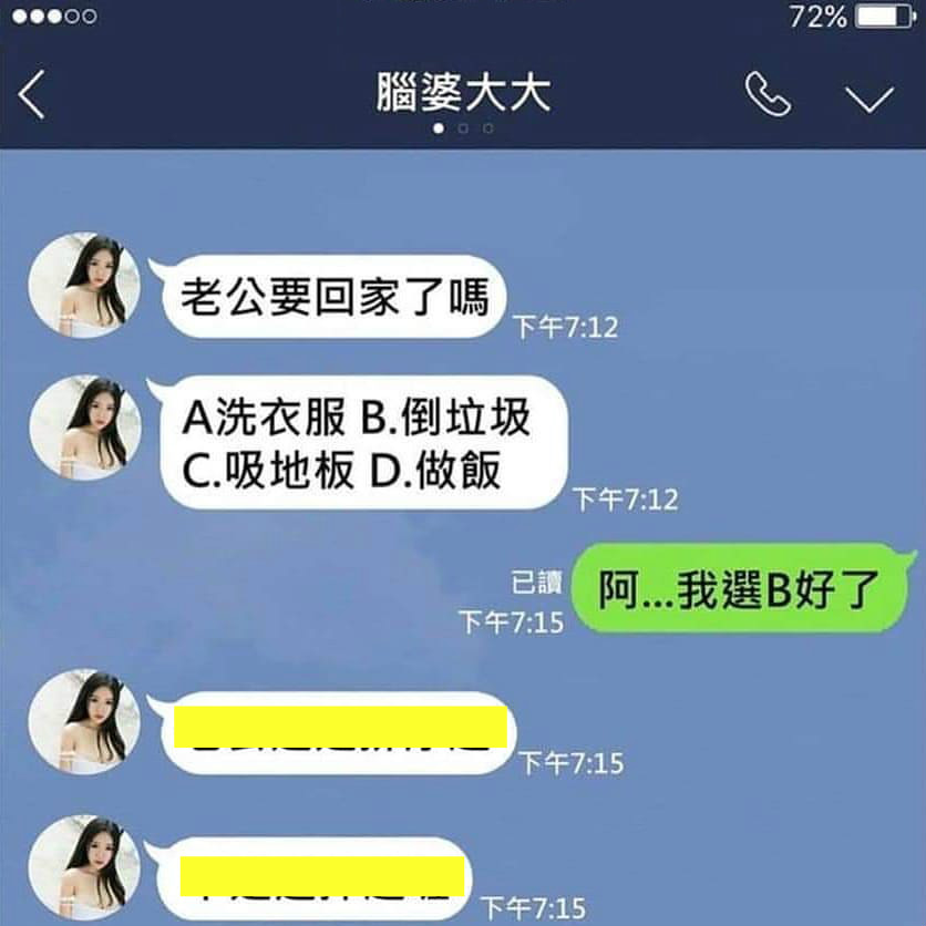 – 老婆問我要回家了嗎 要我選個家事做 我想說倒垃圾應該ok啦 沒想到….