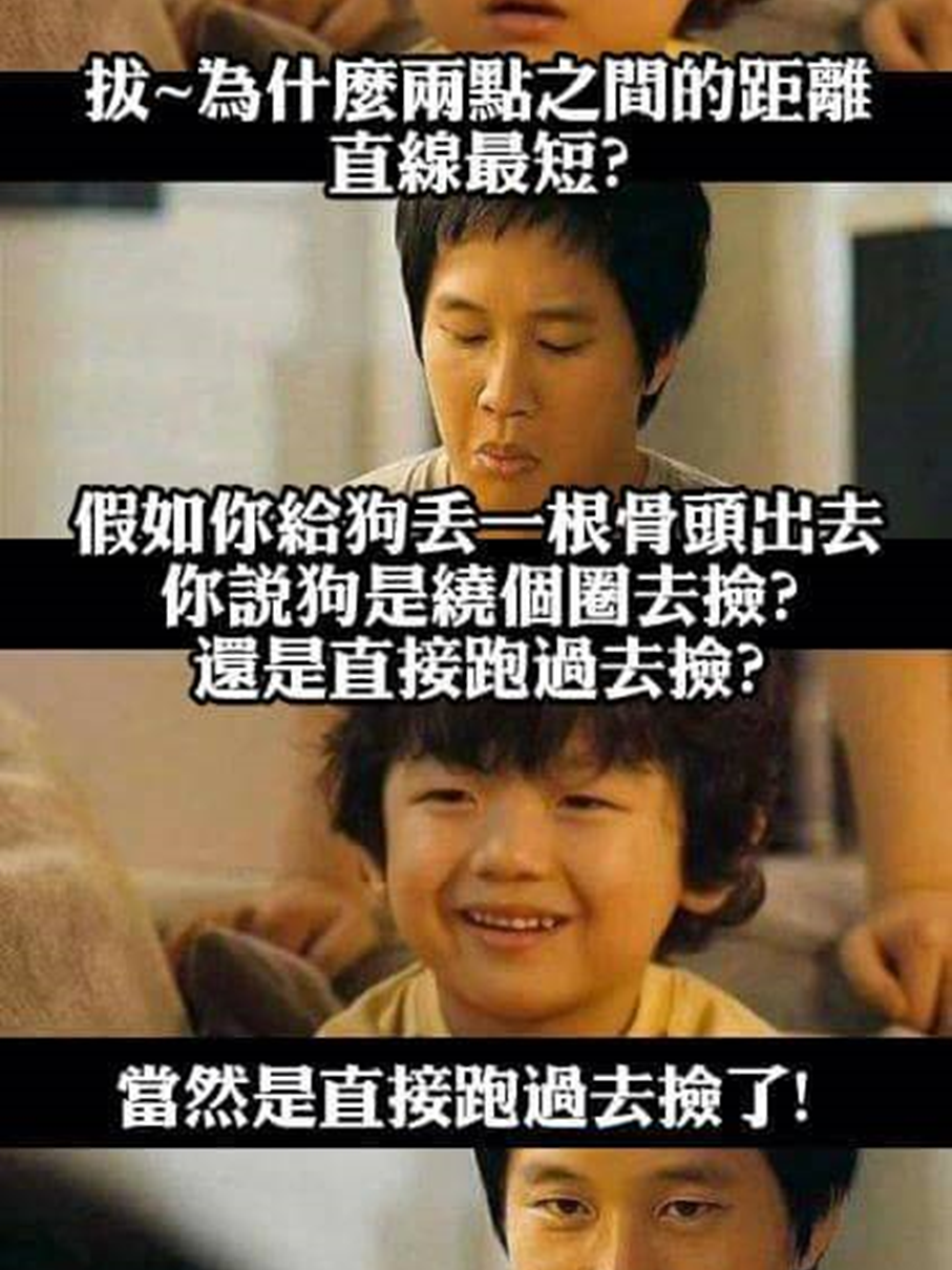– 孩子天真的問爸爸問題 爸爸~為什麼兩點之間的直線距離最短? 於是爸爸反問他如果是你會
