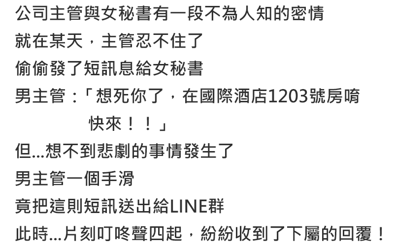 公司主管與女秘書有一段不為人知的密情, 就在某天,主管忍不住了 (圖/網路示意圖) 偷偷發了短訊息給
