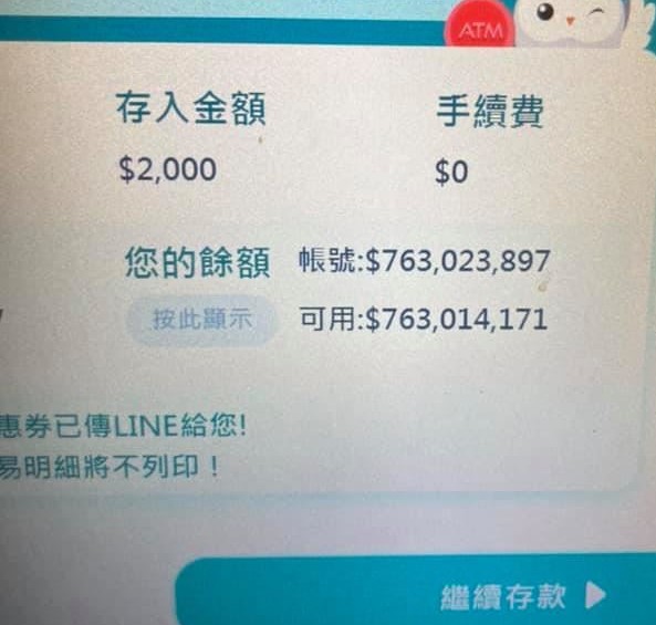 存2000元變7億!驚見「戶頭莫名多出7億」銀行回應了 最近一名網友領錢時發現戶頭餘額