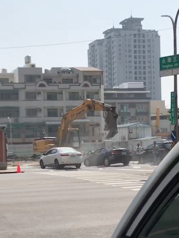 車子擋工地入口,車主任性拒絕移車 反被怪手一拳KO ! 台南市安平區一處建築工地內,發
