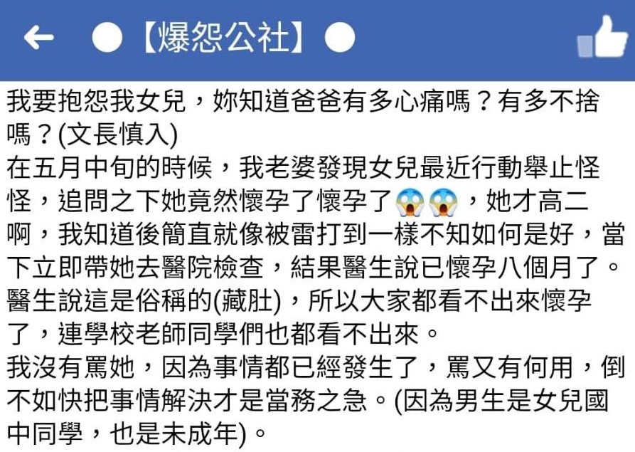 高中女兒懷孕8個月「老爸選擇不責備」吐真心話:不敢讓妳知道我很心痛… 根據《ETtoday新聞雲》報