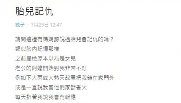 有一名媽媽在社群平台「Dcard」發文說, 自己懷孕之後原本覺得是喜事, 不過產檢初期結果, 似乎是