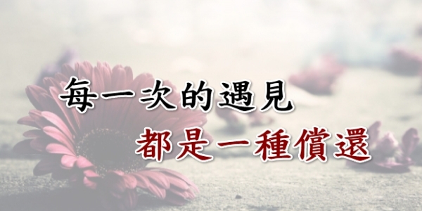 大千世界能遇見是微乎其微的機會, 茫茫人海能遇見是十分渺茫的緣分, 若不是上輩子相欠,今生又如何遇見