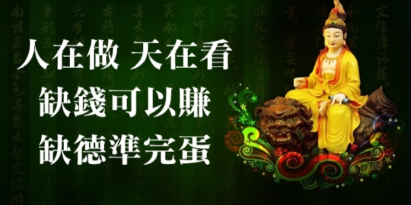 做人, 你可以一時貧困, 但不能為了掙錢坑蒙拐騙, 人在做,天在看, 缺錢可以賺,缺德準完蛋。 做人