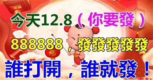 親愛的朋友 今天是2020年12月8日 你要發一起發 今天啥也不幹 就是來給你送財的 收到這份祝福的