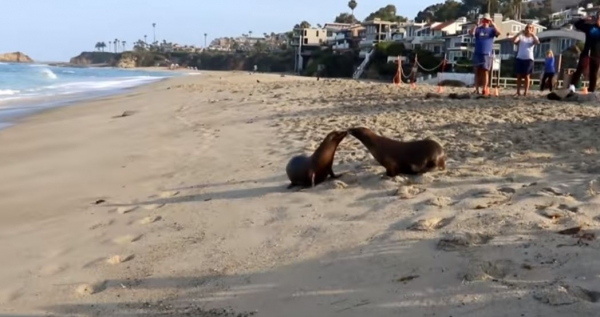 今天來跟你說說因缺乏食物和營養而被保育員捕捉上岸,在細心照料下兩隻海獅和彼此互相親吻後一起奔回海