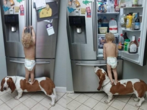 國外一名網友Rob Herber在臉書放上一段影片,一位還包著尿布的寶寶,站在冰箱前面,實在太想