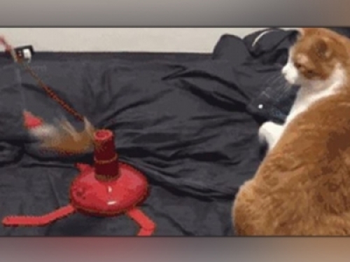 好心買了一隻自動逗貓棒給喵星人,本來玩得正興奮的牠過沒幾秒,主人差點沒被眼前的畫面給笑到死! 根